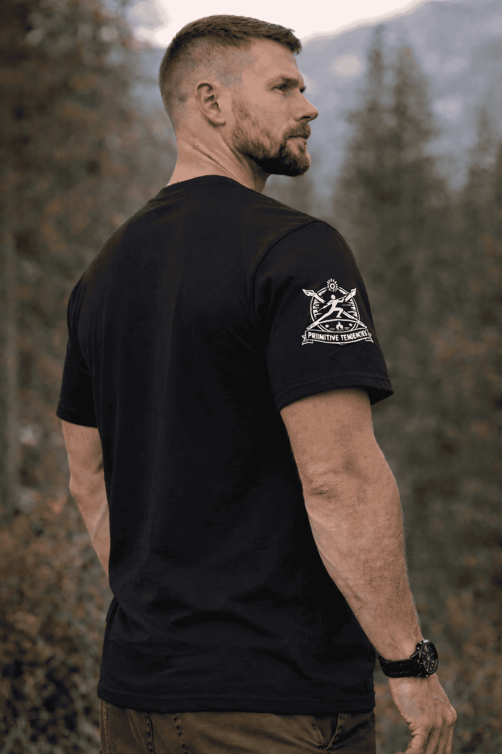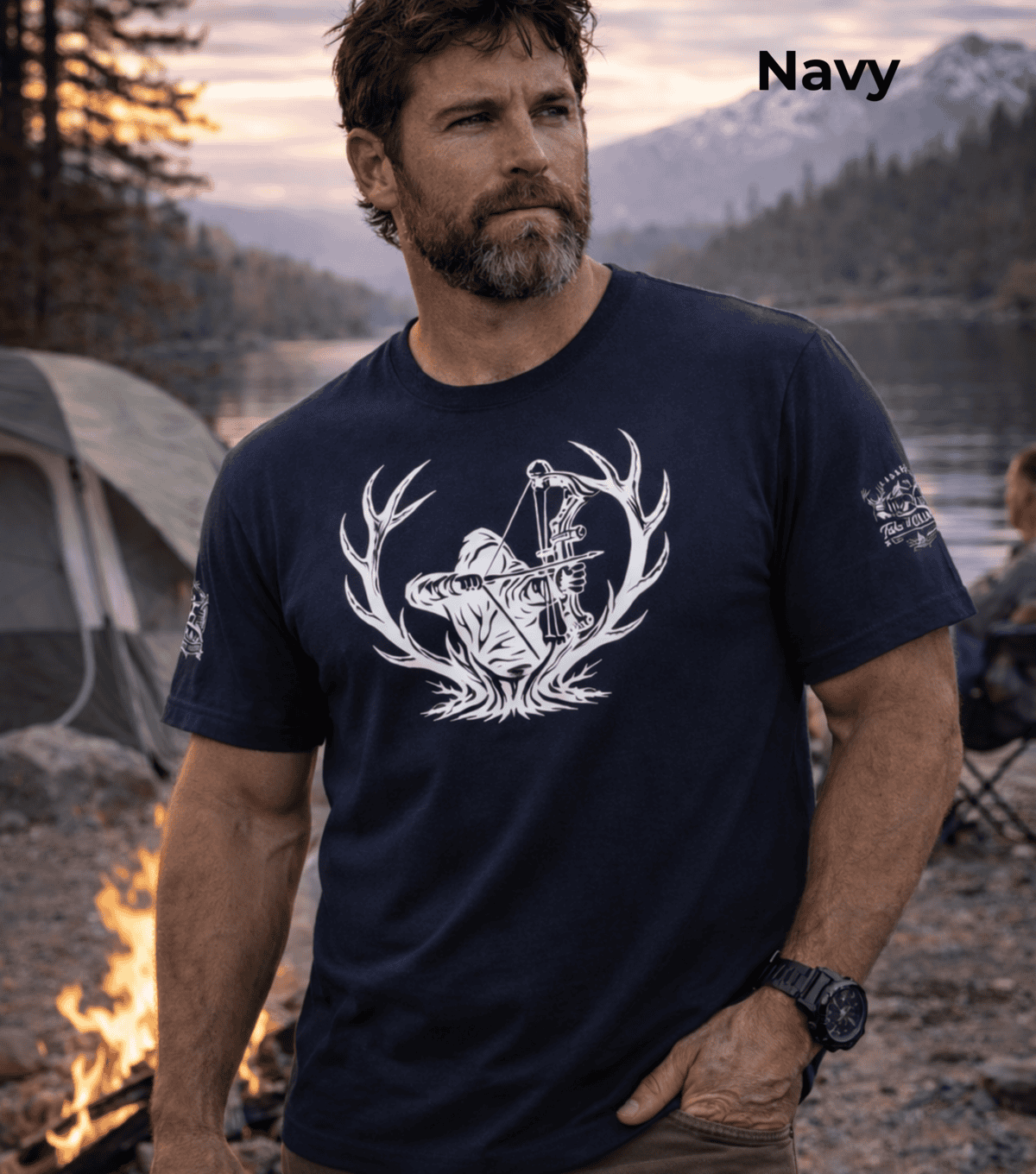 A rugged, primal tee that wears like a memory from the first step into the woods. The front carries a bold bowhunter silhouette framed by antlers — a quiet promise of focus and patience. Sleeve graphics tap into the primitive pull toward the wild: hand-drawn marks and earthy motifs that feel like a personal rite, worn rather than announced. Lightweight, soft, and breathable, this shirt moves with you on code-red stalks at dawn or slow afternoons around the fire. It’s built to last through seasons of tracking and growth, and it ages into something familiar and trusted. Slip it on and the forest narrows, senses sharpen, and the life outside the grid comes into reach.