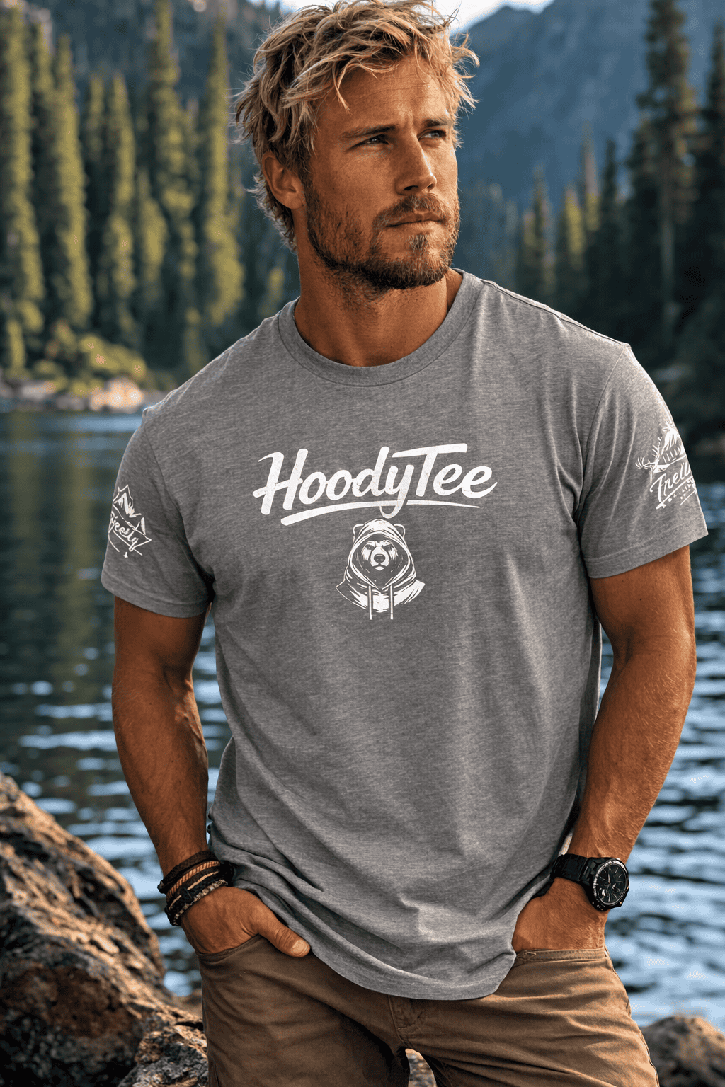 Light, airy, and built for moving—this jersey tee feels like a breath of fresh air after a long day on the trail. The HoodyTee logo rests on the chest while bold sleeve graphics—”Take it Outside” and “Wander Freely”—catch the eye when you sling a pack over your shoulder or roll up a sleeve by the campfire. It wears like a favorite: relaxed retail fit, crew neckline for a clean silhouette, and side seams and shoulder tape that keep the shape wash after wash. Made from soft Airlume combed and ring-spun cotton with a tear-away label for itch-free comfort, it layers easily under jackets or stands alone on warmer afternoons. Built and printed with care (DTF/DTG sleeve and neck printing options) and REACH certified, this tee belongs in the kit of anyone who chooses trails over traffic and stories over screens.