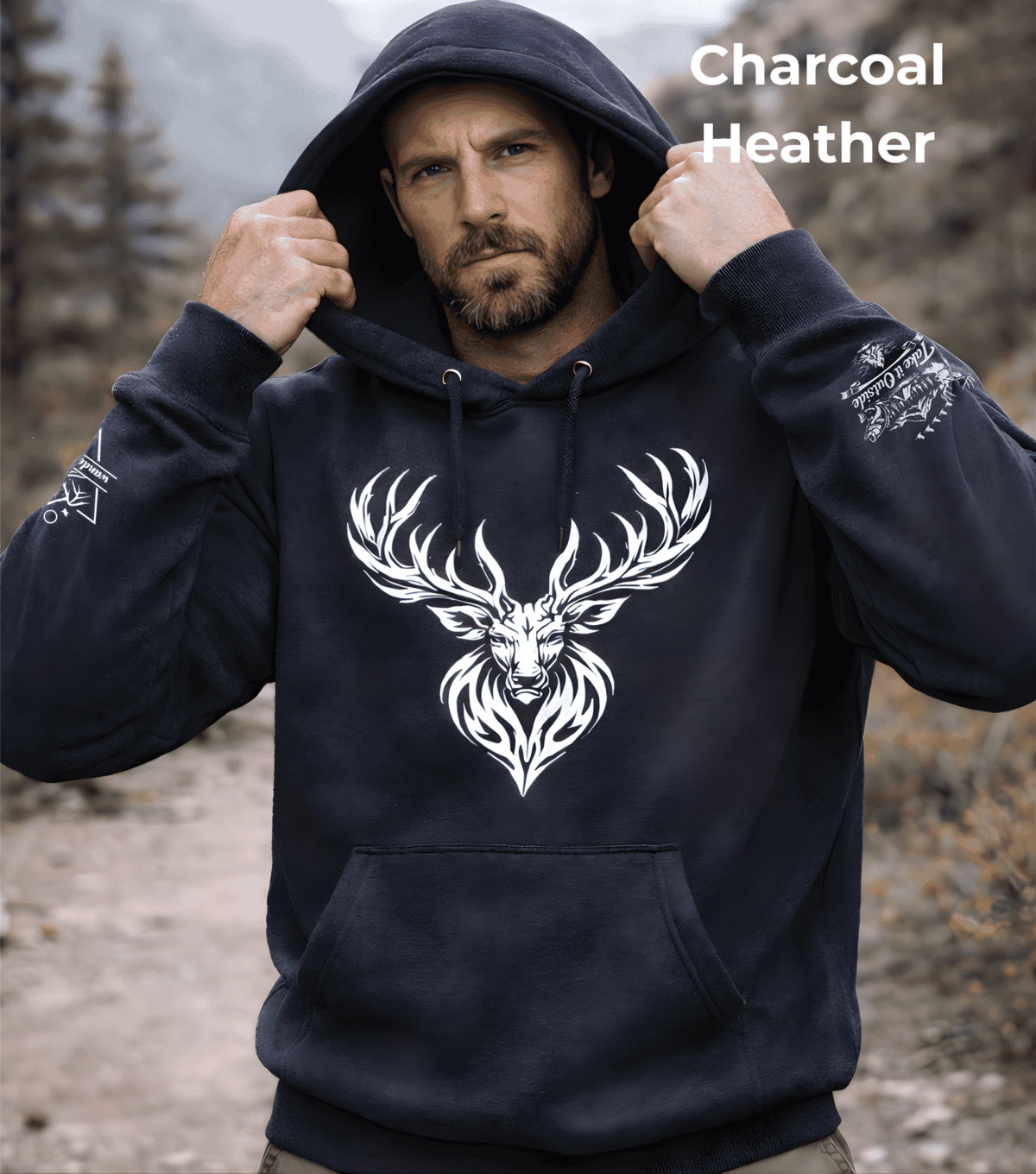 This heavyweight hoodie brings the woods to your everyday wear. A striking stag motif stretches across the front with coordinating sleeve artwork, giving the sweatshirt a rugged, outdoorsy vibe that still feels lived-in and soft. The dense fabric and fleece-lined hood hold heat on chilly mornings, while the relaxed cut lets you layer a flannel or pack a thermos without feeling tight. Details like split-stitch seams and ribbed cuffs keep the silhouette durable and tidy through wear. Wear it on long drives to the cabin, slow mornings by the campfire, or when you want a touch of wilderness style in town.