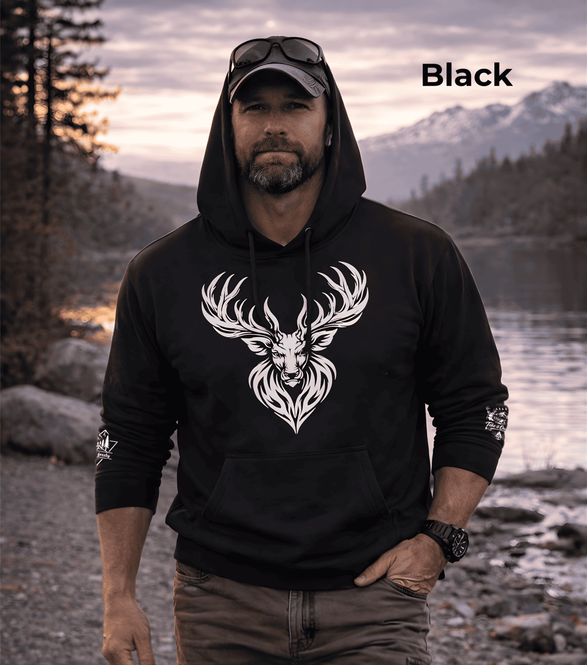 Tribal Stag Hoodie with Front, Back and Sleeve Graphics